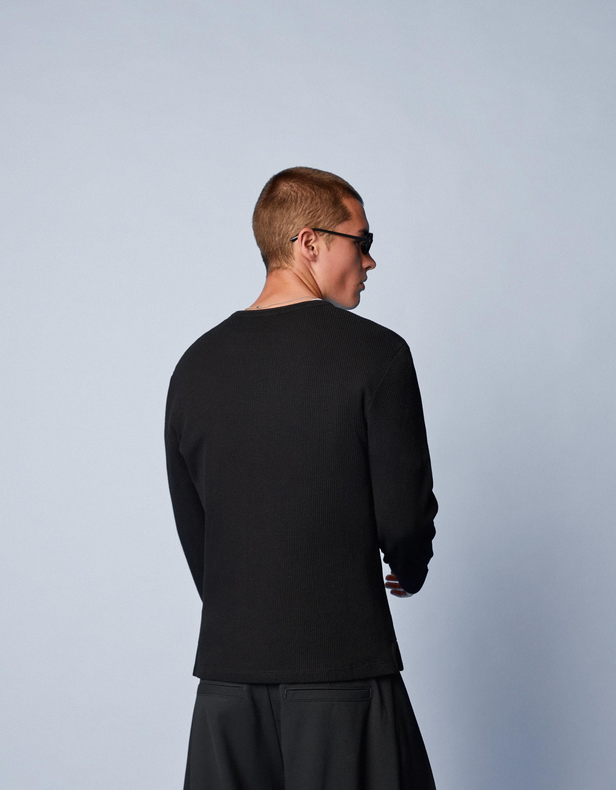 تی‌شرت آستین بلند جذب یقه هِنلی-برشکا