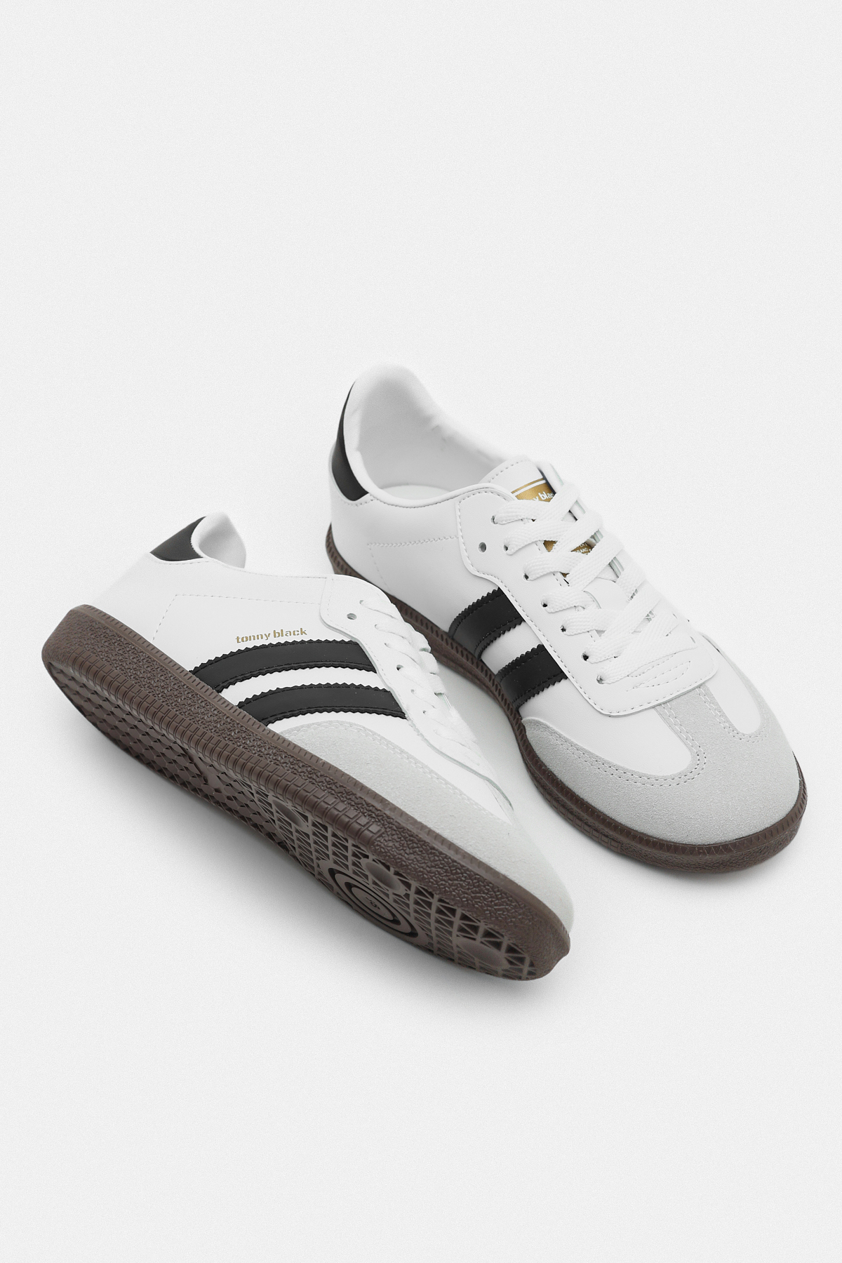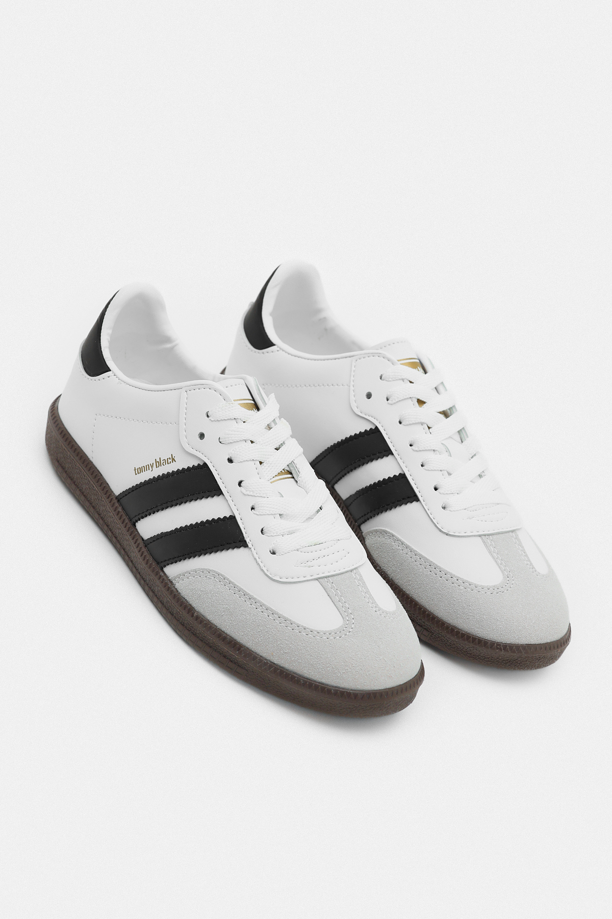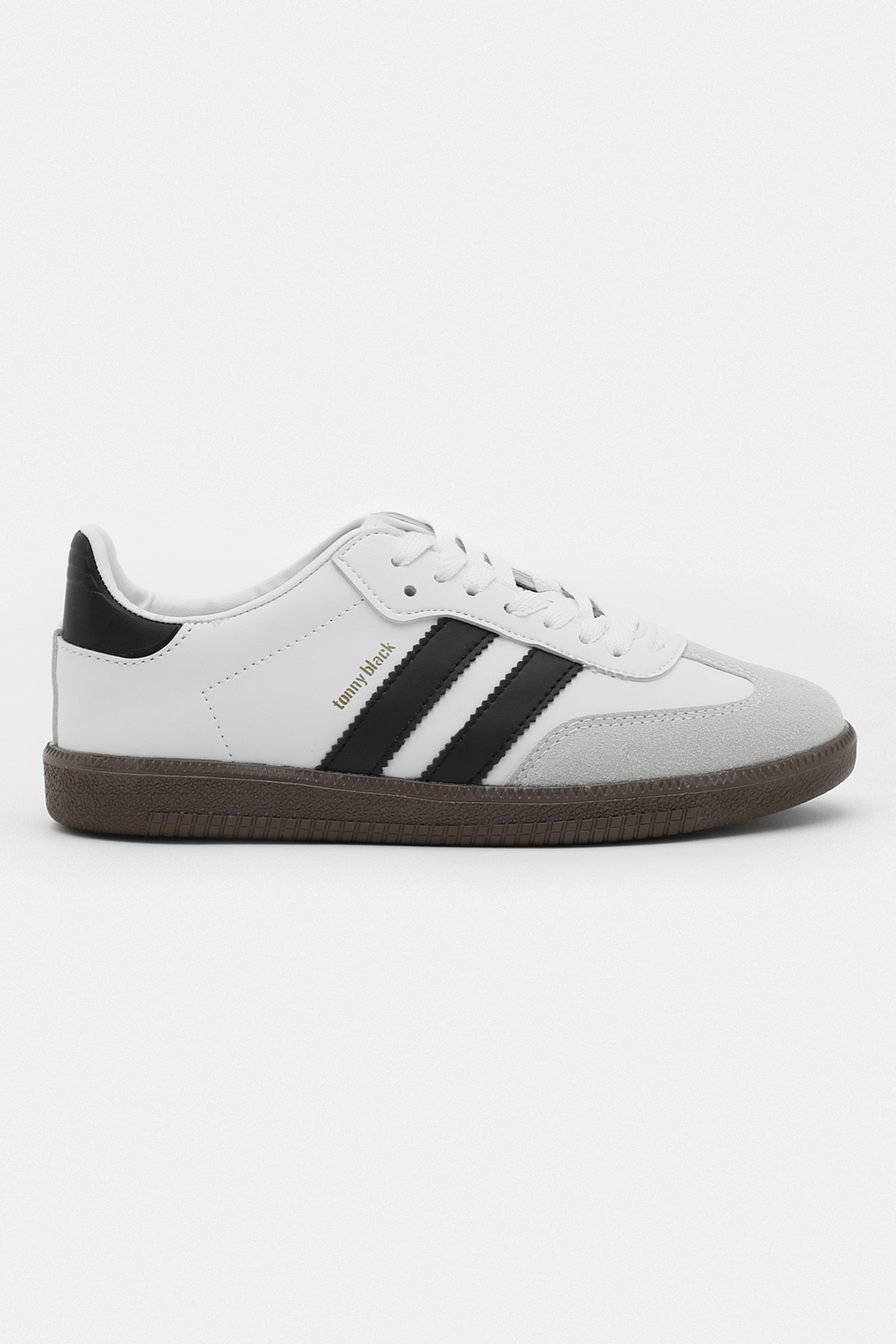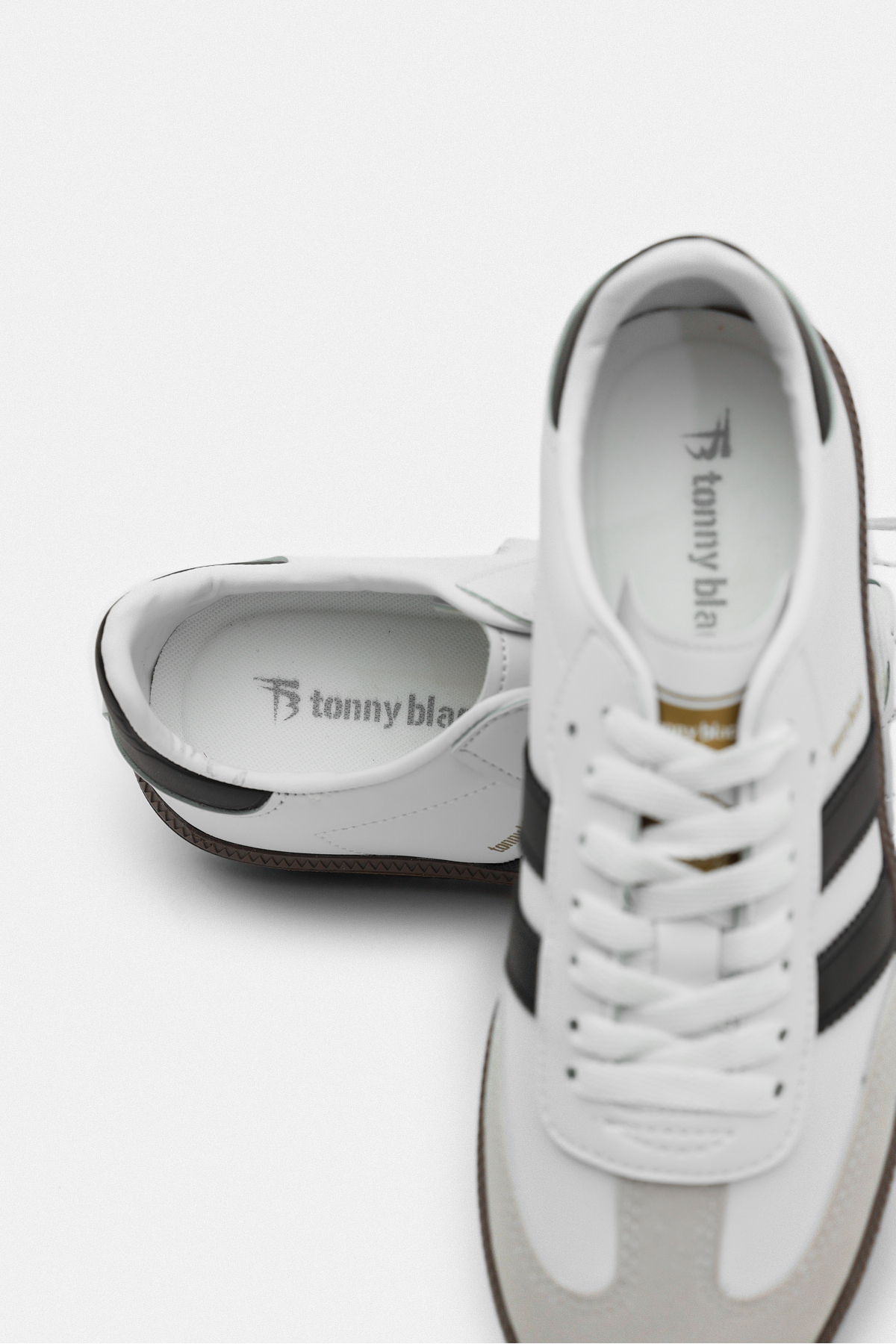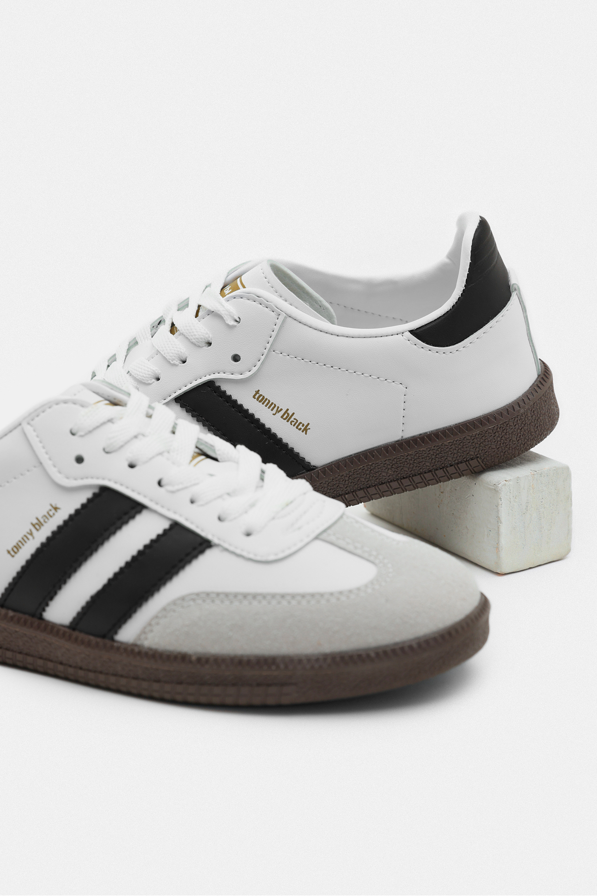 کفش ورزشی بندی سفید و مشکی یونی سکس با زیره ترمو و نوار کناری