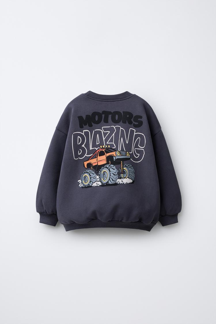سویشرت چاپی کامیون هیولا با یقه گرد و آستینهای بلند، راحتی را فراهم میکند. پارچه اصلی پنبهای و سطح داخلی شاردوندار آن گرم و نرم است. با چاپ بزرگ کامیون هیولا روی سینه و پشت، جلب توجه میکند. جزئیات لبههای کشباف، زیبایی آن را تکمیل میکند و برای استفاده روزمره مناسب است.