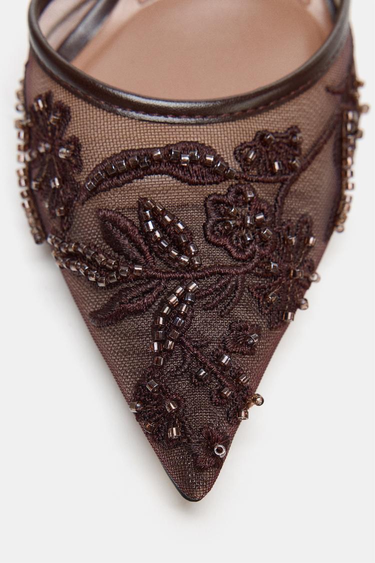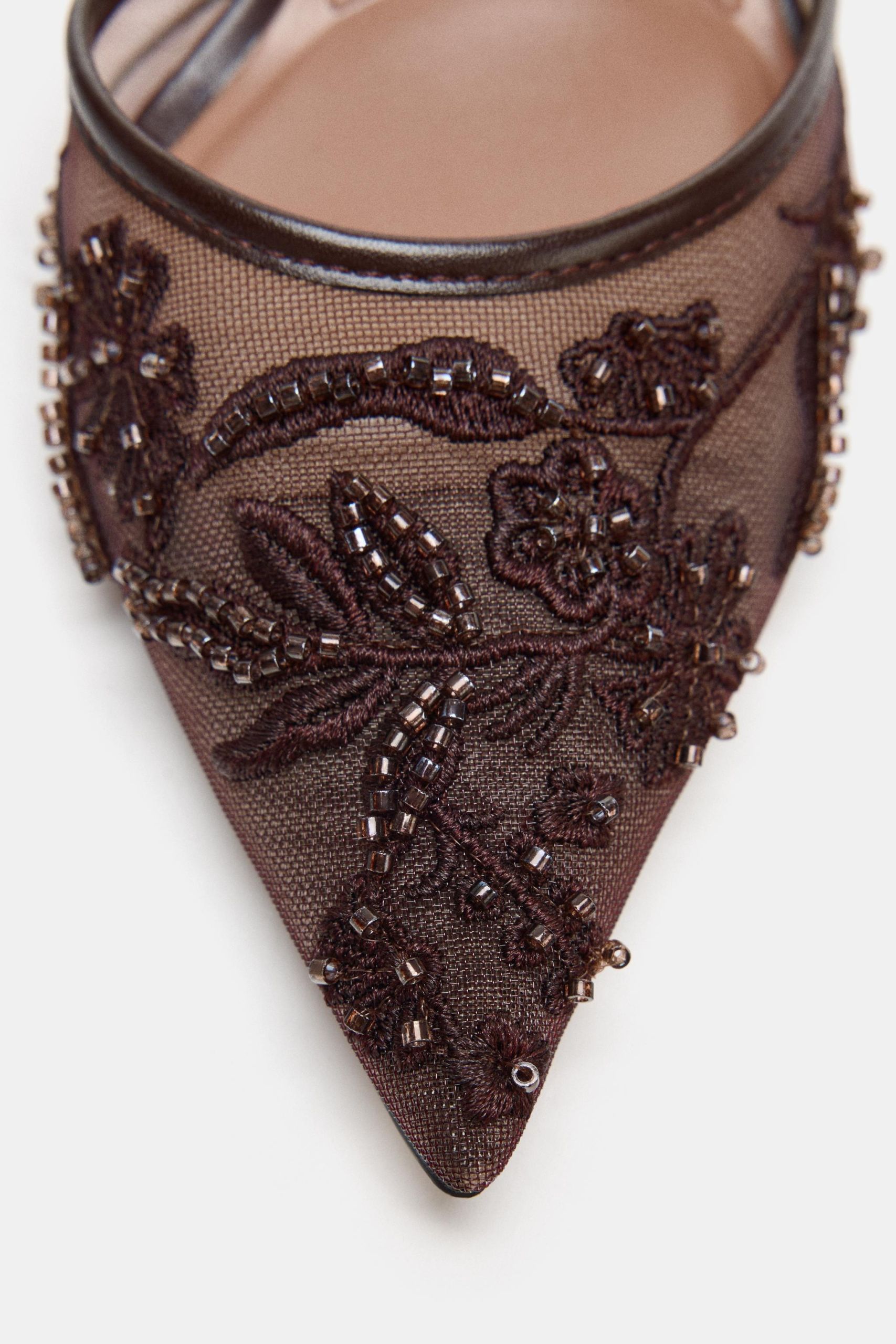 کفش پاشنهبلند براق و مدرن از جنس پارچه توری، با جزئیات گلدوزی شده و سنگهای درخشان که جلب توجه میکند. بند کشی پشت آن استفاده راحتی را فراهم میکند. پاشنههای باریک و بلند آن ظاهری شیک و زیبا ارائه میدهد. طراحی نوک تیز و ارتفاع پاشنه ۷ سانتیمتری آن را به انتخابی بینظیر برای روزهای خاص شما تبدیل میکند.